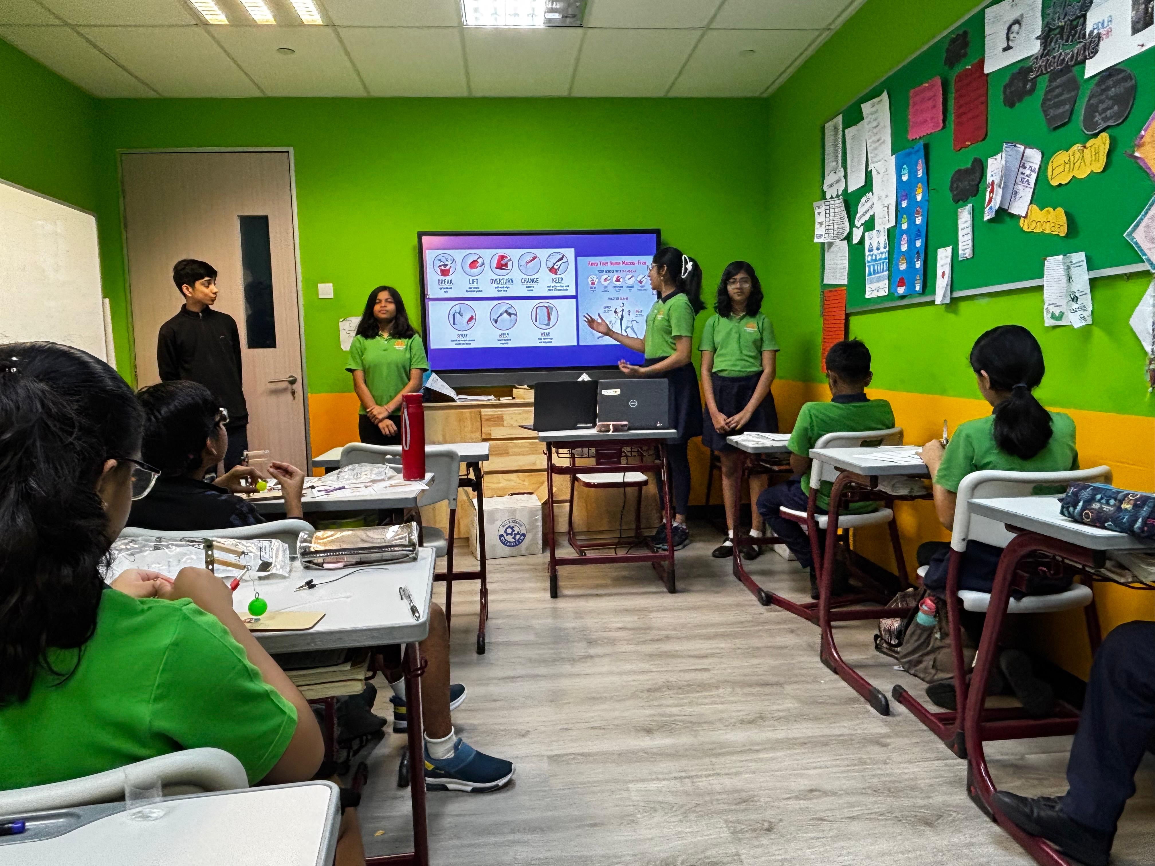 Sharing about dengue prevention tips with junior classes